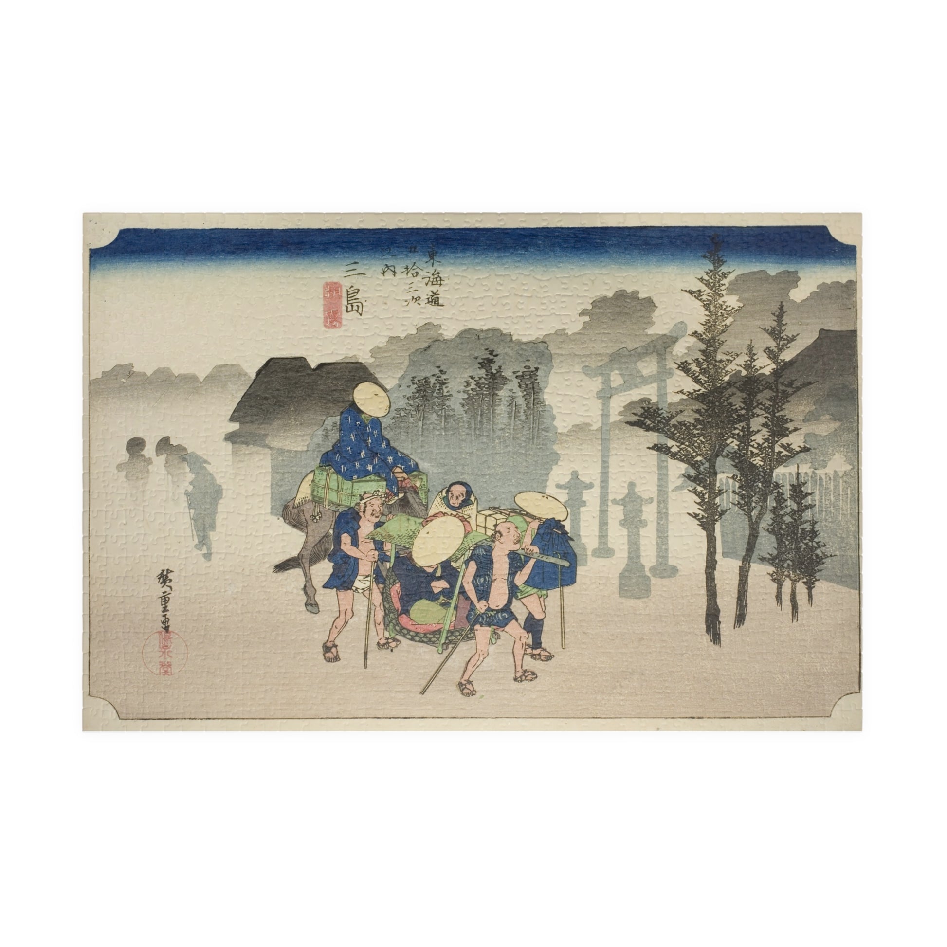 Ukiyo-e Jigsaw Puzzle (1014-piece): Mishima – “Morning Mist at Mishima” Tōkaidō Fifty-three Stations by Utagawa Hiroshige (1833)