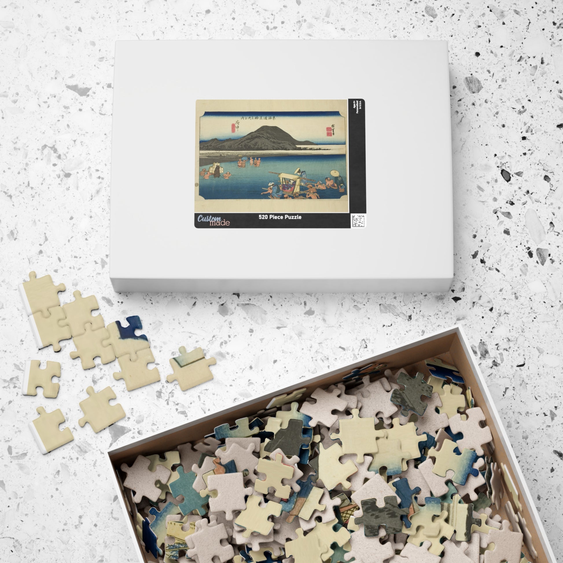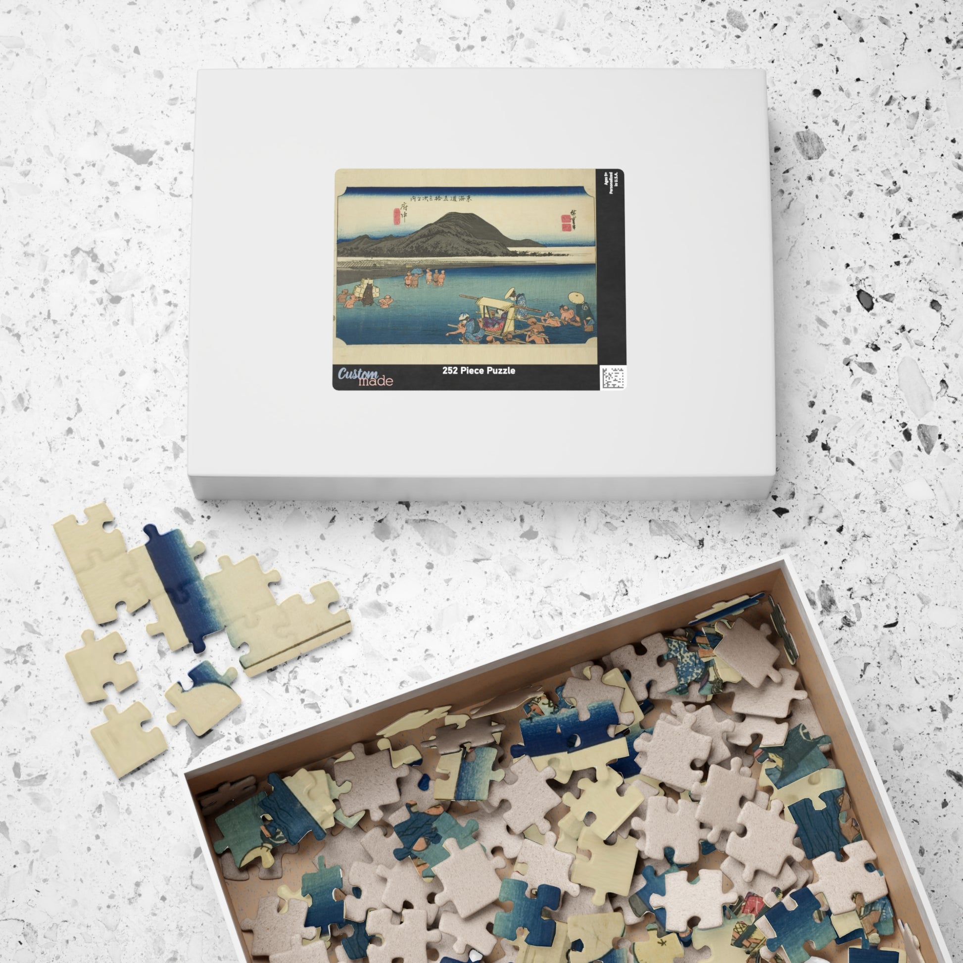 Ukiyo-e Jigsaw Puzzle (252, 520-piece): Fuchū – “Crossing the Abe River” Tōkaidō Fifty-three Stations by Utagawa Hiroshige (1833)