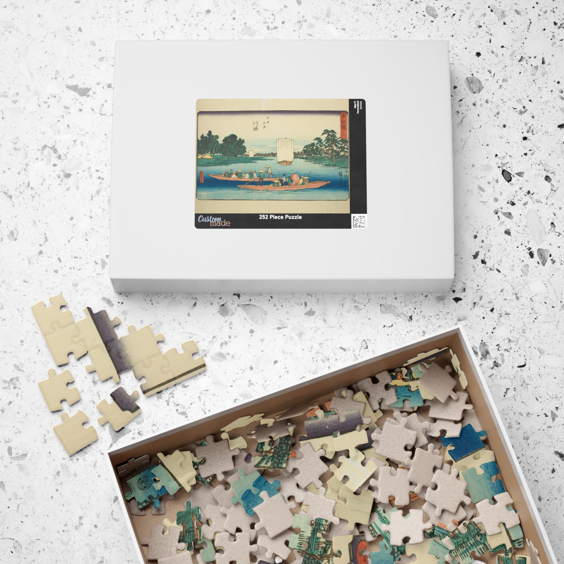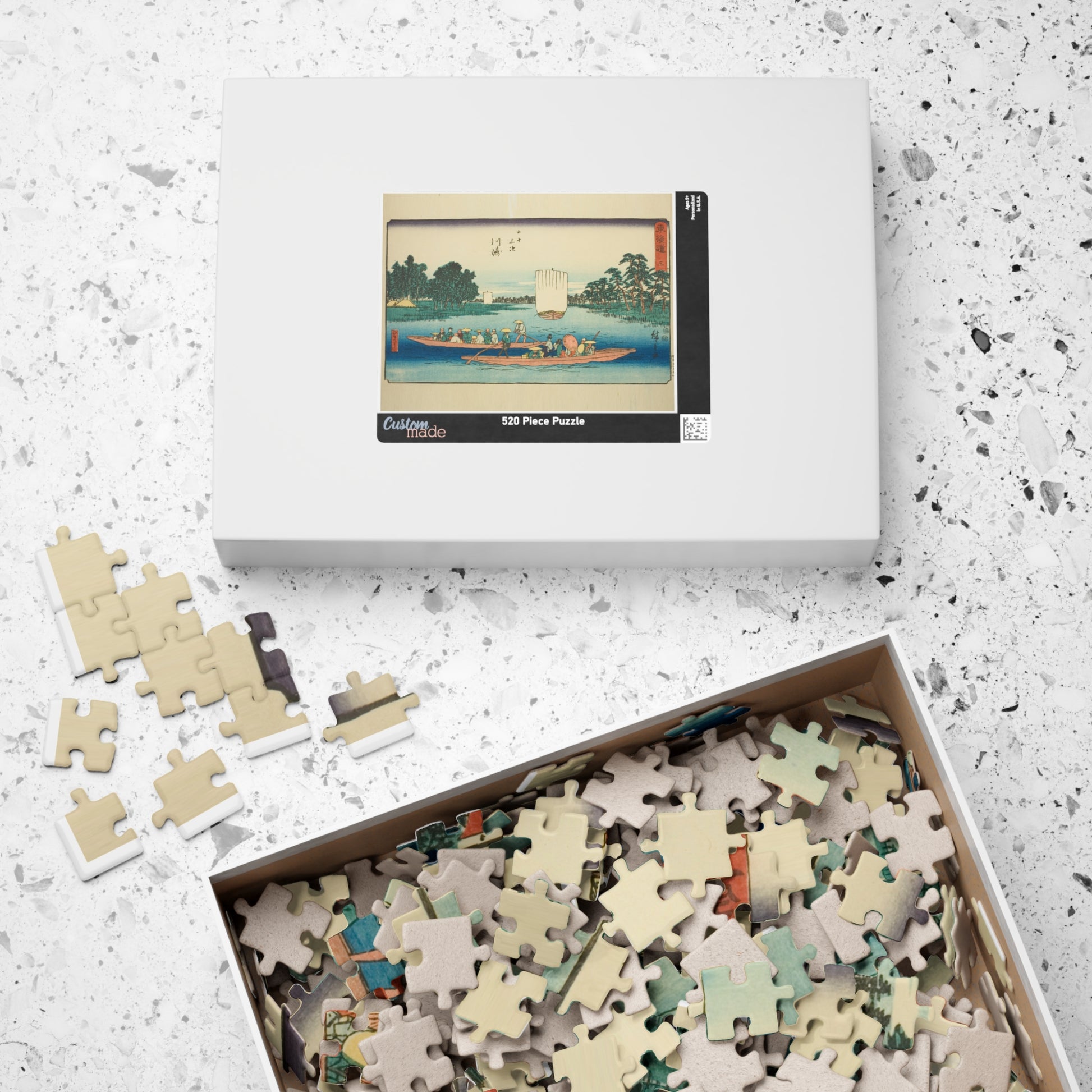 Ukiyo-e Jigsaw Puzzle (252, 520-piece): Kawasaki – “The Rokugō Ferry” Tōkaidō Fifty-three Stations by Utagawa Hiroshige (1833)
